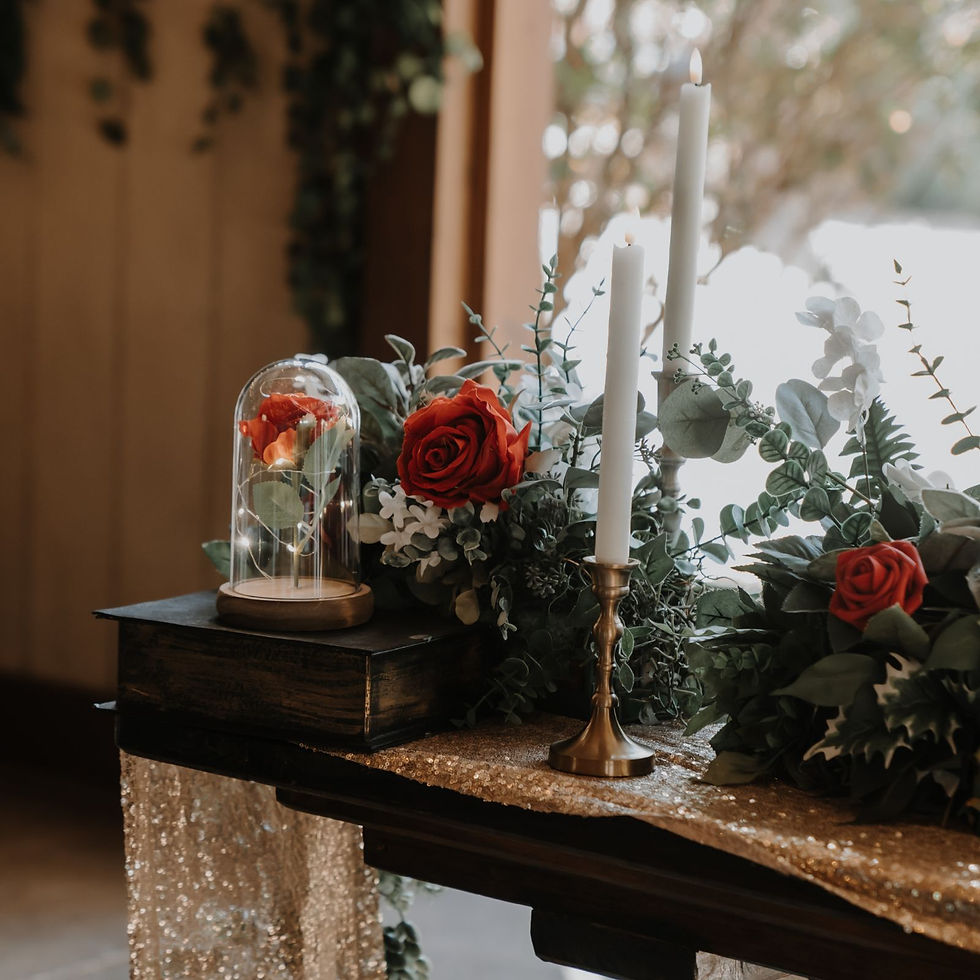 candles, themed accents, a variety of centerpieces in varying shapes and sizes to complement the setting, and table numbers